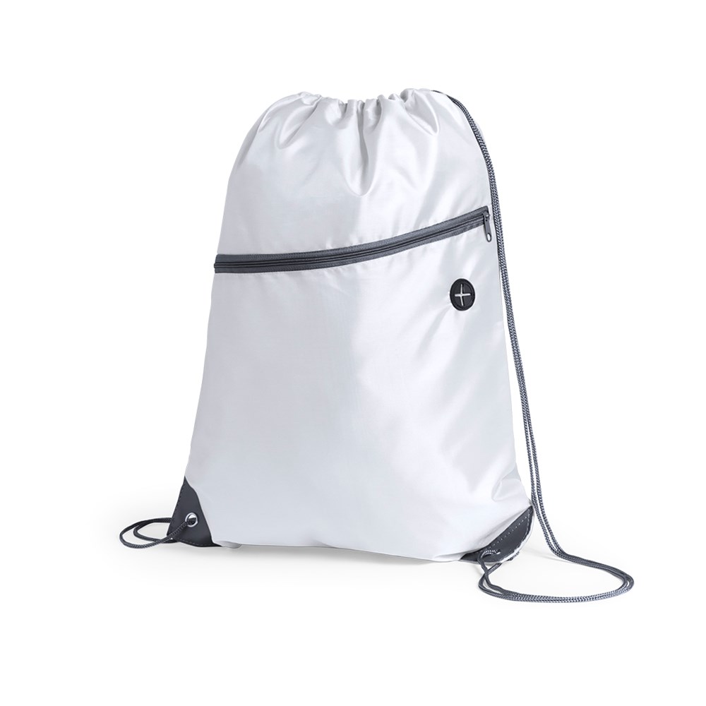 Drawstring backpack made of soft 210D polyester. With front zipped pocket and headphone outlet. Self-closing strings in grey colour, matching zip and corners with metal eyelets and PU leather reinforcement. Avaiable in a wide range of colours.