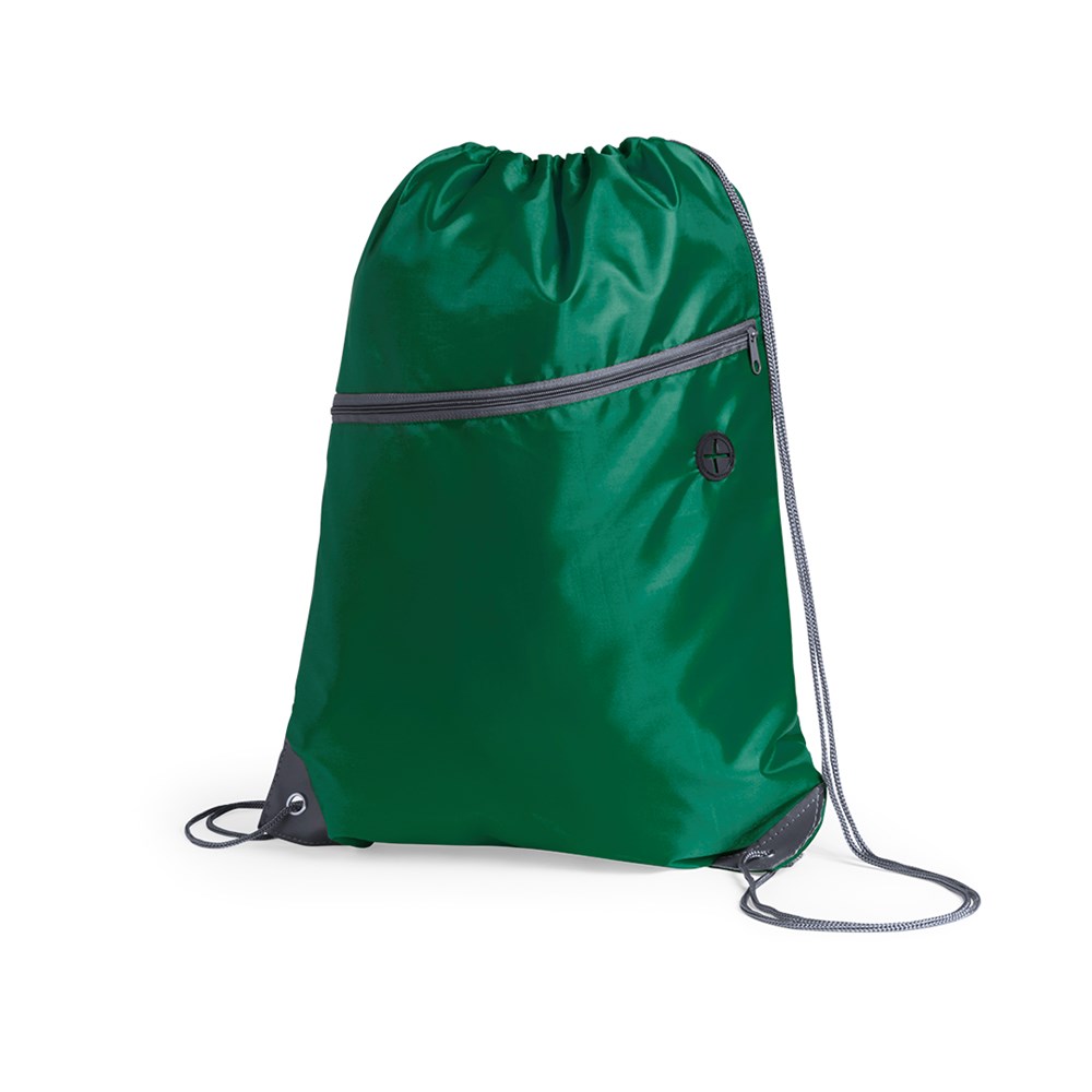 Drawstring backpack made of soft 210D polyester. With front zipped pocket and headphone outlet. Self-closing strings in grey colour, matching zip and corners with metal eyelets and PU leather reinforcement. Avaiable in a wide range of colours.
