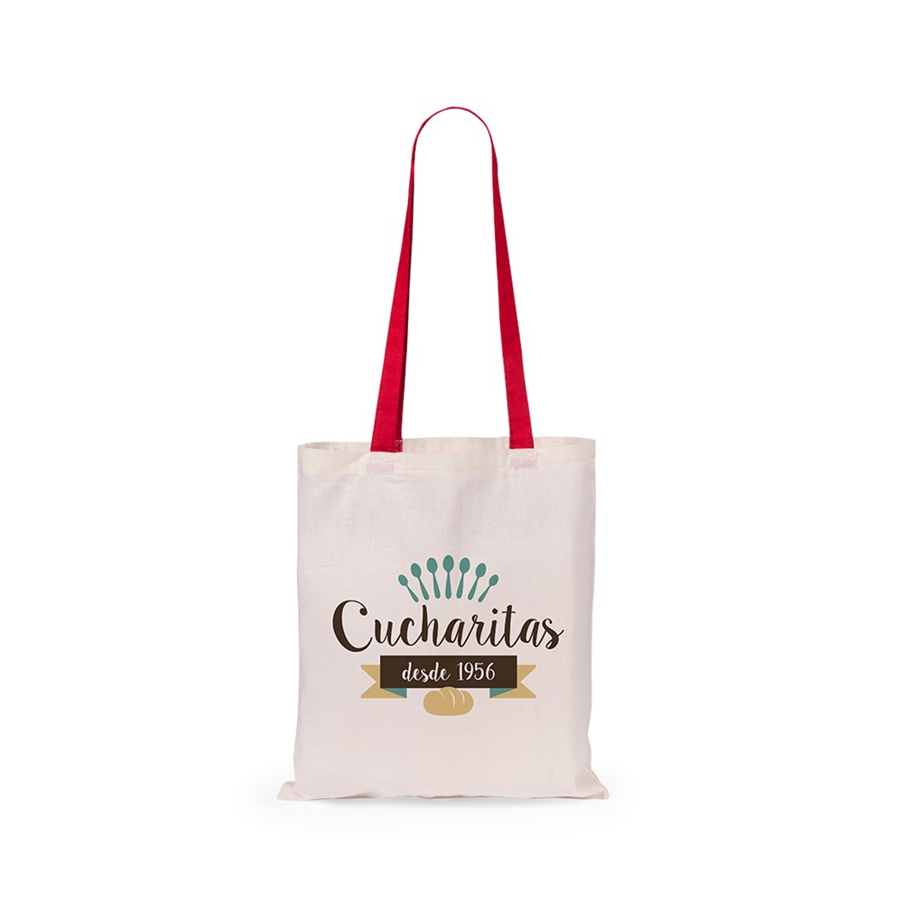 Bag in cotton material in combination of body in natural color and handles in a varied range of bright tones. With 70cm long handles and stitched finishing. Resistance up to 7kg of weight.