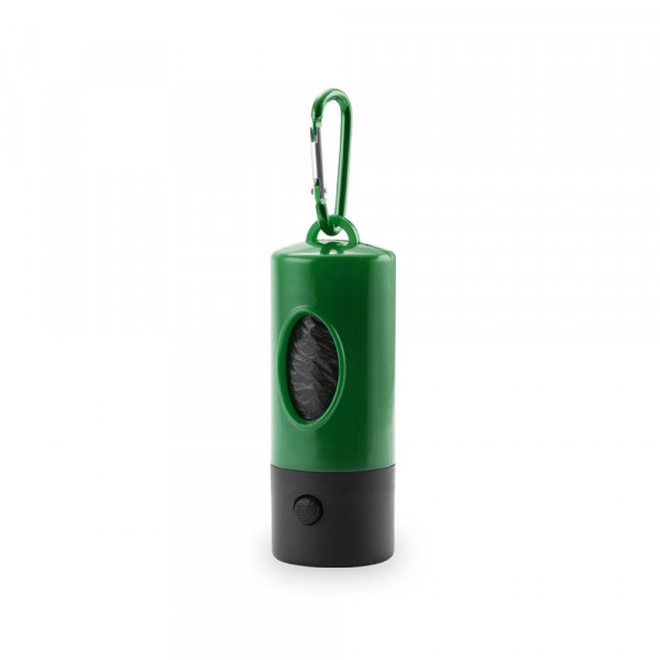Pets bag dispenser with resistant body in bright colors. With built in LED flashlight. Including 15 bags.