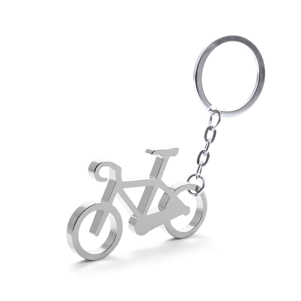 Keychain bicycle shaped, with aluminum body in varied and bright tones. especially designed for laser printing.