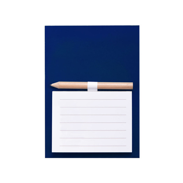 Magnet notepad in resistant cardboard of bright and varied colors. 40 sheets with striped design, with pencil and holder.