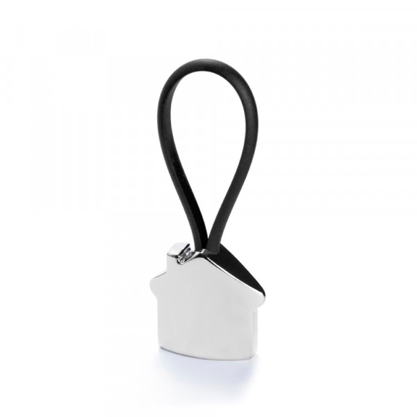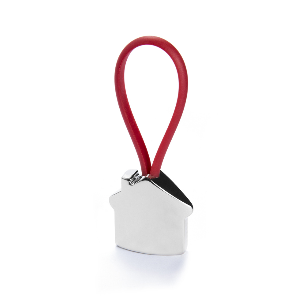 Metal keychain in fun 3D home design. With rubber band in a varied and bright tones.