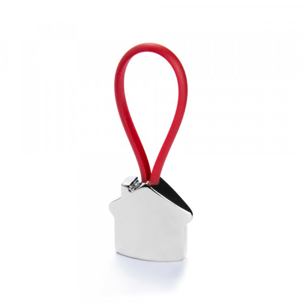Metal keychain in fun 3D home design. With rubber band in a varied and bright tones.