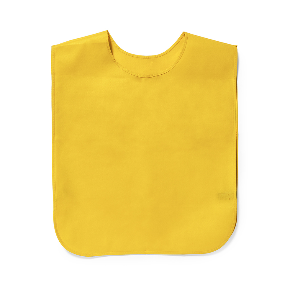 Sporty adult bib in resistant non-woven with bright tones and elasticated sides. One size fits all.