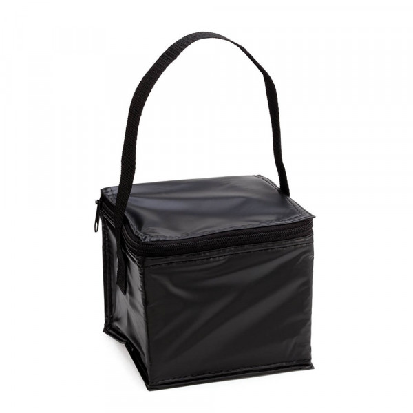 Cooler bag of 4 cans in resistant PVC of bright tones. Isothermal inside in aluminum finish. With zipper and matching color carrying handle.