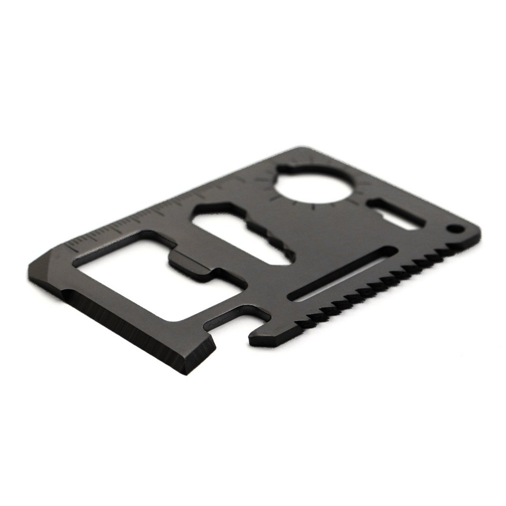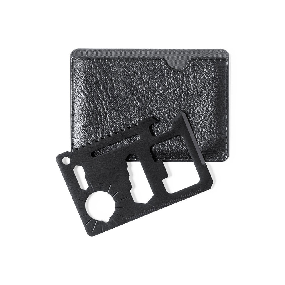 Multi-tool with resistant stainless steel body with 11 functions. With can opener, knife, screwdriver, ruler, bottle opener, bottle opener, spanners, butterfly keys, saw and direction indicator. Presented in resistant leather case.