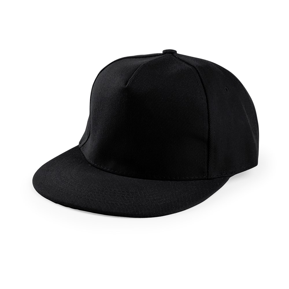 5 panel cap with padded flat visor. Combination of cotton and thick polyester materials with smooth finish, adjustable velcro closure and vivid colors.