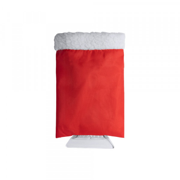 Ice scraper with protective mitten in resistant, colorful 210T polyester.