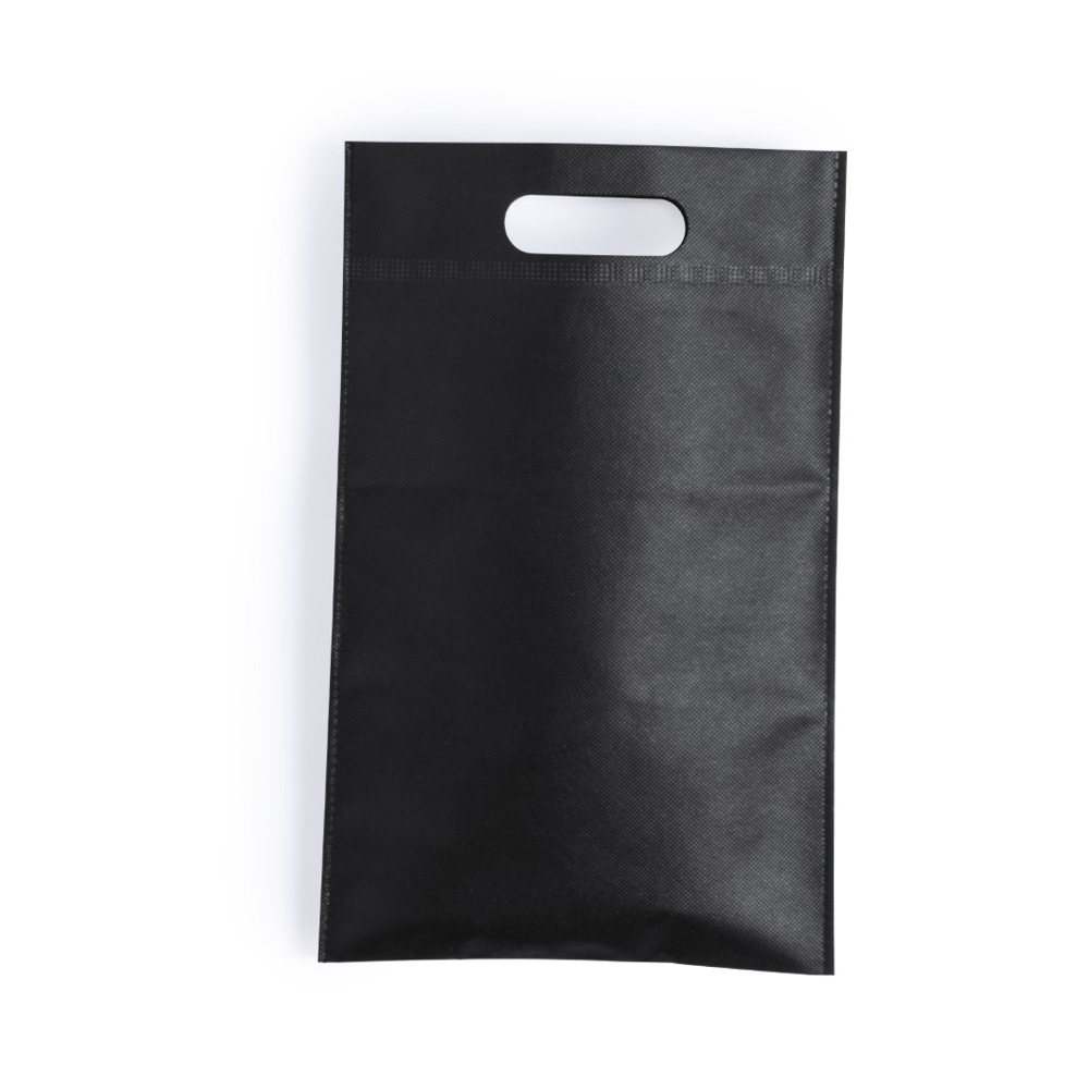 Non-woven bag in 80g/m2 in black color, especially designed for summer shoes. With reinforced handle.