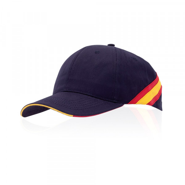 National flag design cap in brushed cotton material. 6 panels, with tricolor sandwich and flag accessories on the sides and rear. With embroidered ventilation holes and adjustable velcro closure.