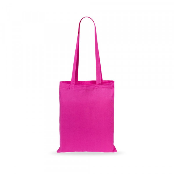 Bag in cotton material, availavle in a wide range of bright colours. With 70cm lenght handles and stitched finish. Resistance up to 7kg weight.