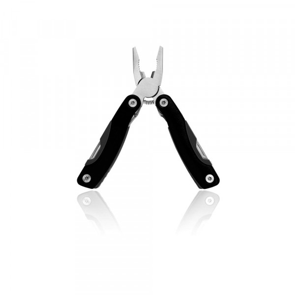 Multi-tool with heavy-duty stainless steel body and 12 functions. Including flat knife, serrated knife, screwdrivers, file, opener, and pliers. Available in a wide range of colours and presented in a resistant polyester sleeve and in an individual box.