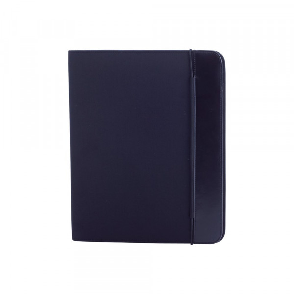 Bicolored design folder in bright tones, in soft microfibre with elastic band closure. Matching color inside with notepad of 20 blank sheets, flap pocket, card holders and pen holder.