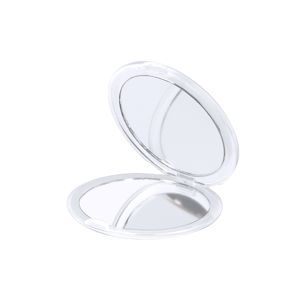 Folding mirror in a wide range of bright translucent colors. With two inside mirrors 1x/2x magnification.