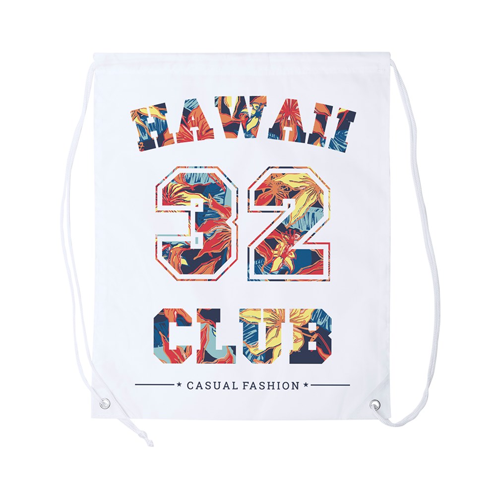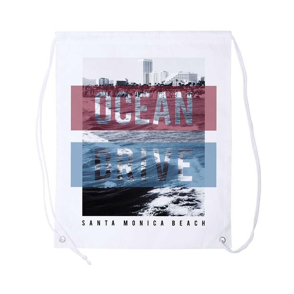Drawstring backpack made in soft polyester, available in a wide range of colours. With black self-closing cords, reinforced PU leather corners I matching colour with the backpack and resistant metal eyelets. Special white colour for sublimation branding.