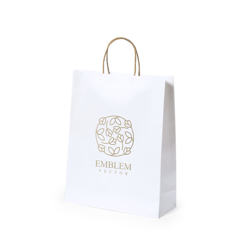 Nature line bag, made of 100g/m2 recycled paper in white finish, with short reinforced handles in natural colour and gusset. Resistance up to 6 kg in weight.
