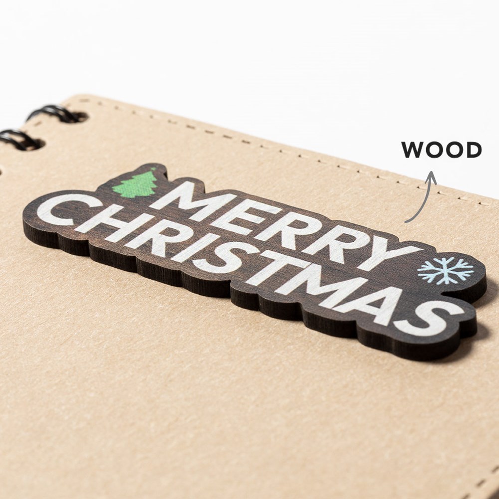 Ring notebook in nature line and Christmas design. With hard, recycled cardboard covers, and genuine elastic closure. Including 80 sheets with striped layout and eco design.