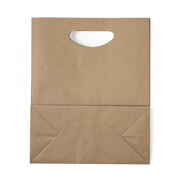 Nature line, lightweight bag made of 80g/m2 recycled paper. With original die-cut handle and gusset.