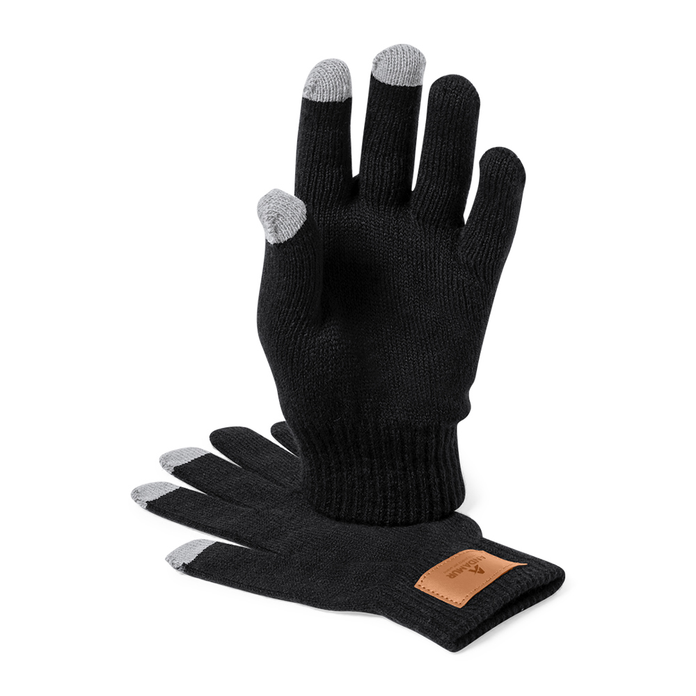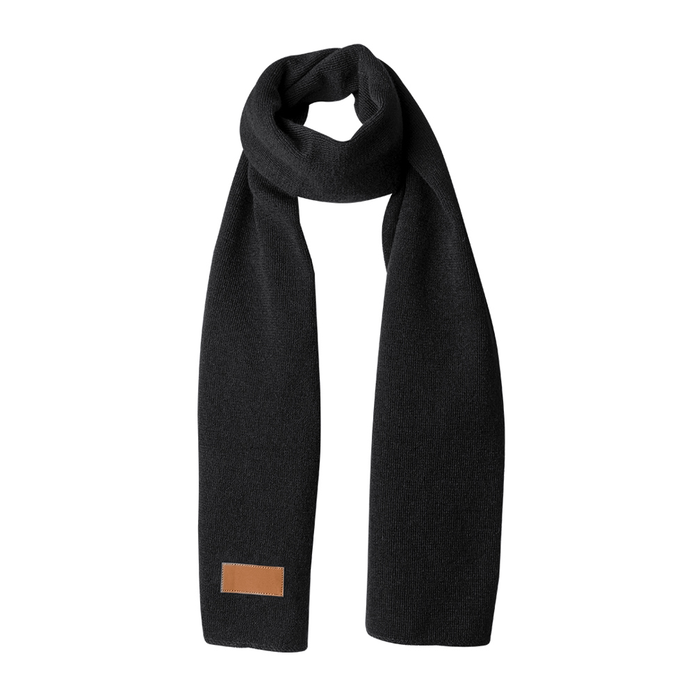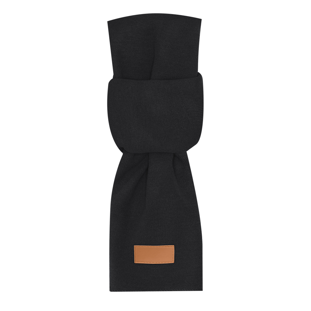 3-piece set: hat, scarf and touch gloves, ideal for providing comfort and functionality on cold days. Each piece features a brown PU stitched label, perfect for branding. Presented in an elegant black box.