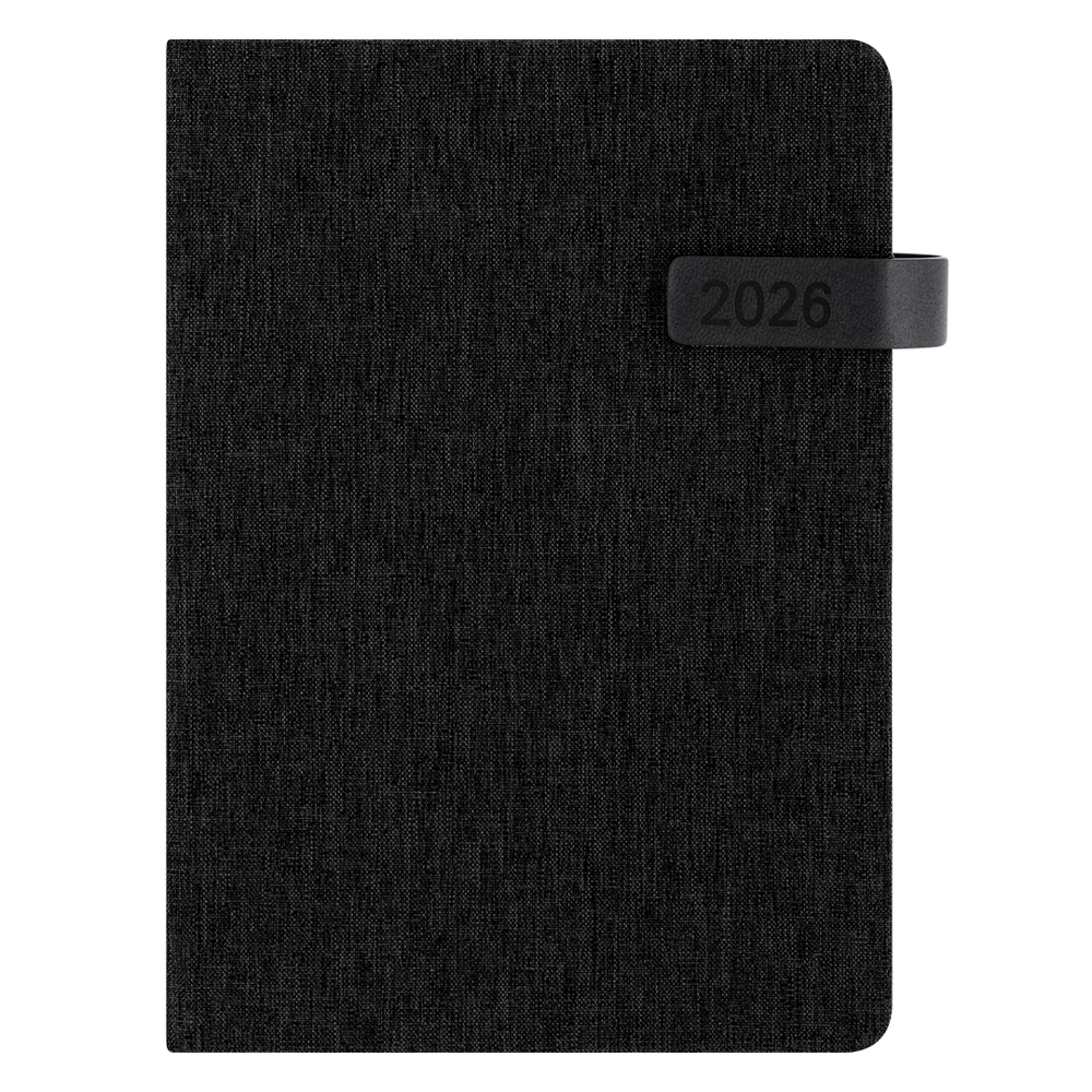 A5 Diary made of recycled RPET polyester. Featuring hard covers with a stylish two-tone finish, PU magnetic closure and matching bookmark. Day-per-page layout with dedicated notes section. Bilingual edition in Spanish and English. Each diary comes individually presented. The RPET material is produced from recycled plastic, encouraging the reuse of waste and contributing to a more sustainable planet.