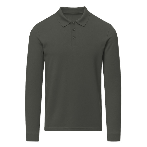 Unisex long-sleeve polo shirt made of piqué fabric. Collar and cuffs in 1x1 rib with elastane for a better fit and comfort. Three-button placket in matching colour and reinforced neck seam cover.