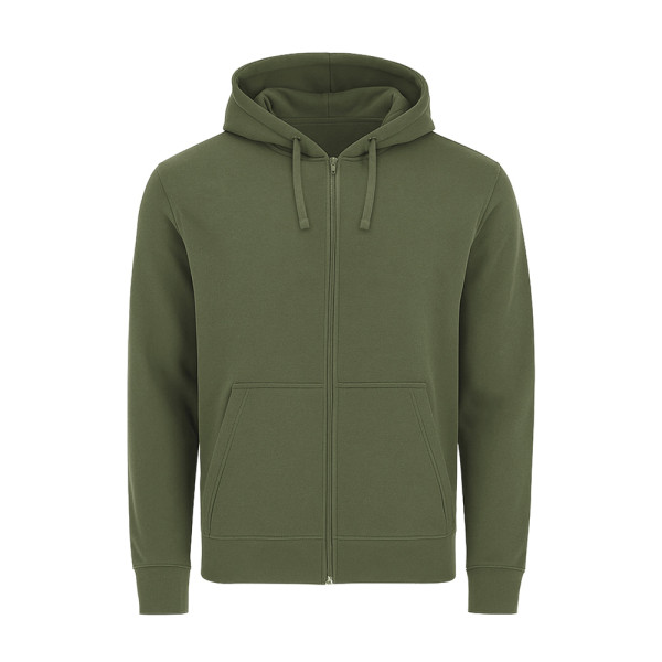 Unisex hoodie with lined hood in matching double-layer fabric. Made of cotton and polyester in soft brushed fleece 280 g/m. Full front zip closure in matching colour. Features adjustable drawstring with matching metal eyelets, kangaroo pocket, reinforced neck tape, and 1x1 rib knit cuffs and waistband with elastane for better fit and comfort.