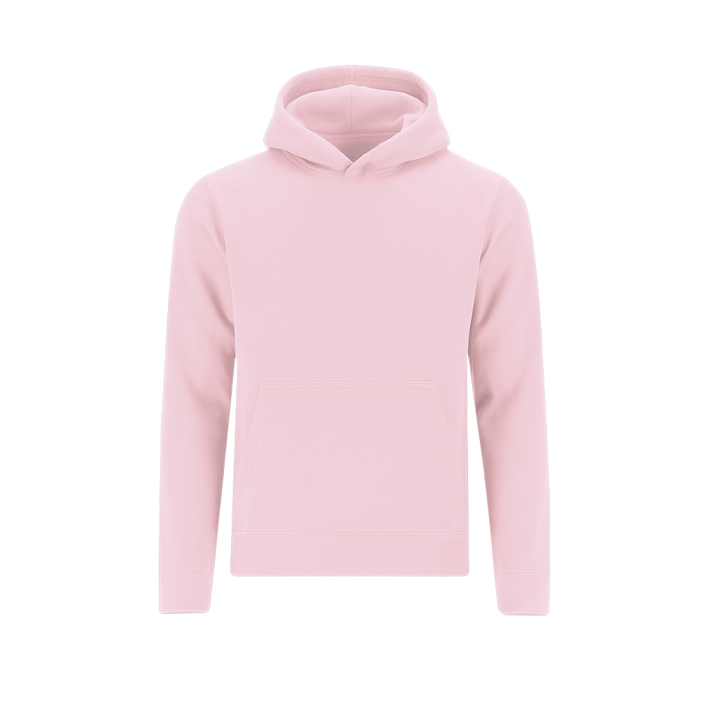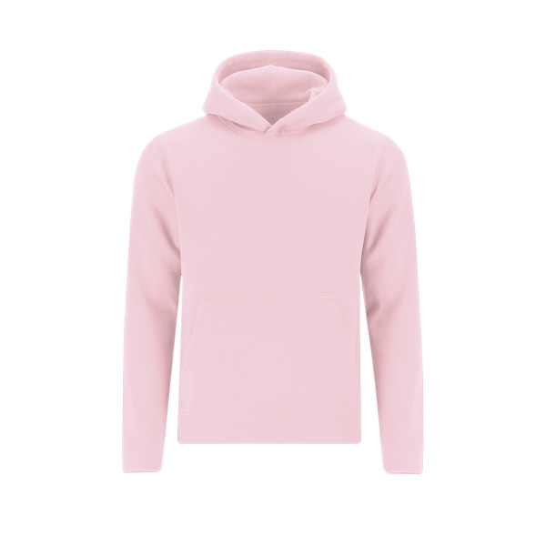Childrens unisex hoodie with lined hood in matching double-layer fabric. Made of cotton and polyester in soft brushed fleece 280 g/m. Features kangaroo pocket, reinforced neck tape, and 1x1 rib knit cuffs and waistband with elastane for better fit and comfort.