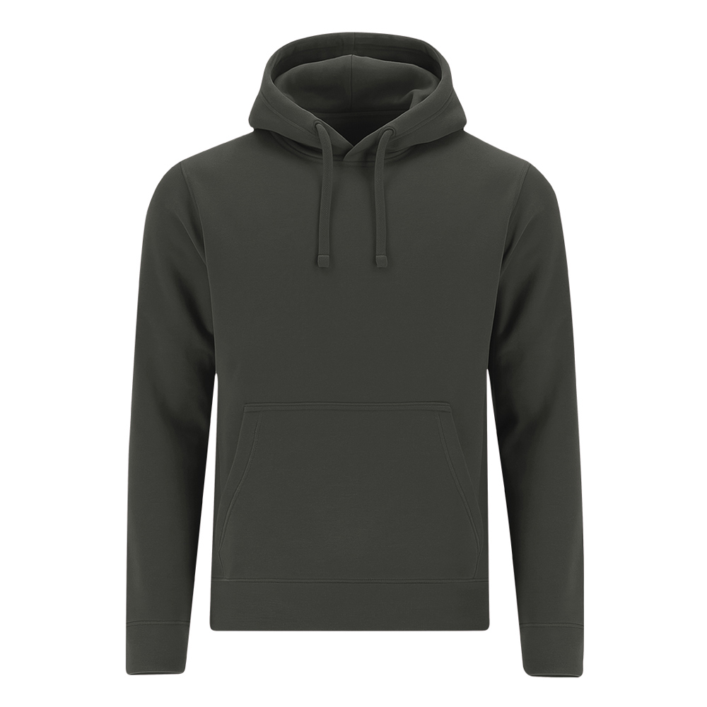 Hooded sweatshirt with lined hood in matching double-layer fabric. Made of cotton and polyester in soft brushed fleece 280 g/m. Features kangaroo pocket, adjustable drawstring with matching metal eyelets, reinforced neck tape, and 1x1 rib knit cuffs and waistband with elastane for better fit and comfort.