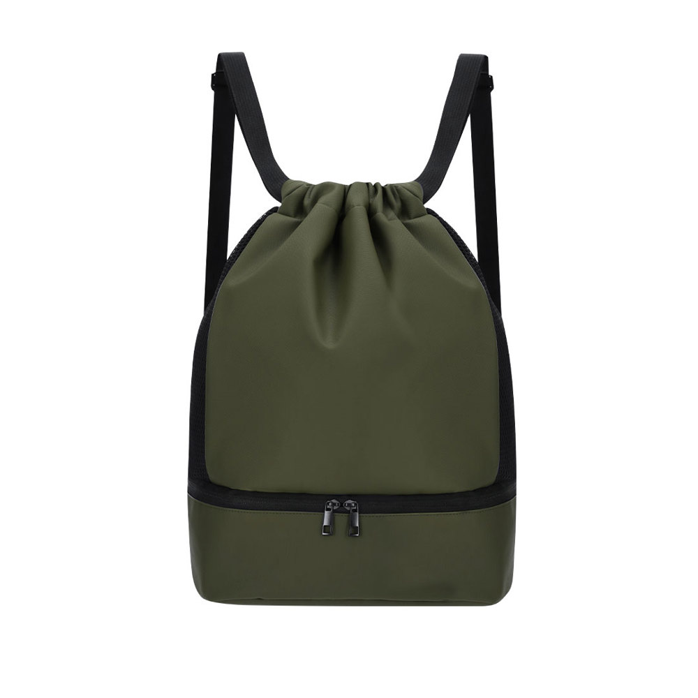 Backpack made from soft PU with a main compartment with a drawstring closure and a small interior pocket with zipper closure. Includes a shoe pocket at the base with double zipper closure and front pockets with quick-access zipper closures. With breathable sides and adjustable shoulder straps.