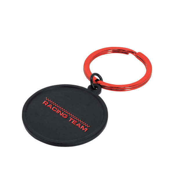 Keychain made of aluminum with a round design in black. Ideal for laser engraving with a color... more