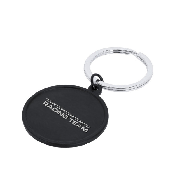 Keychain made of aluminum with a round design in black. Ideal for laser engraving with a color... more