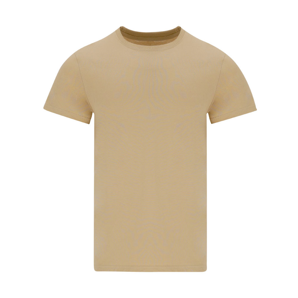 Unisex short-sleeve tubular T-shirt made of 190 g/m² smooth knit cotton. Designed with a 1x1 ribbed crew neck featuring elastane for added flexibility and comfort, along with reinforced taping for durability.