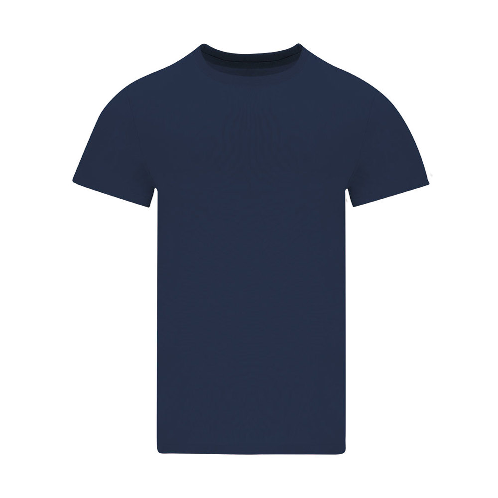 Unisex short-sleeve T-shirt crafted from 170 g/m² smooth knit cotton. Features a 1x1 ribbed crew neck with a four-layer finish. Designed with side seams and reinforced shoulder-to-shoulder tape for added strength and durability.