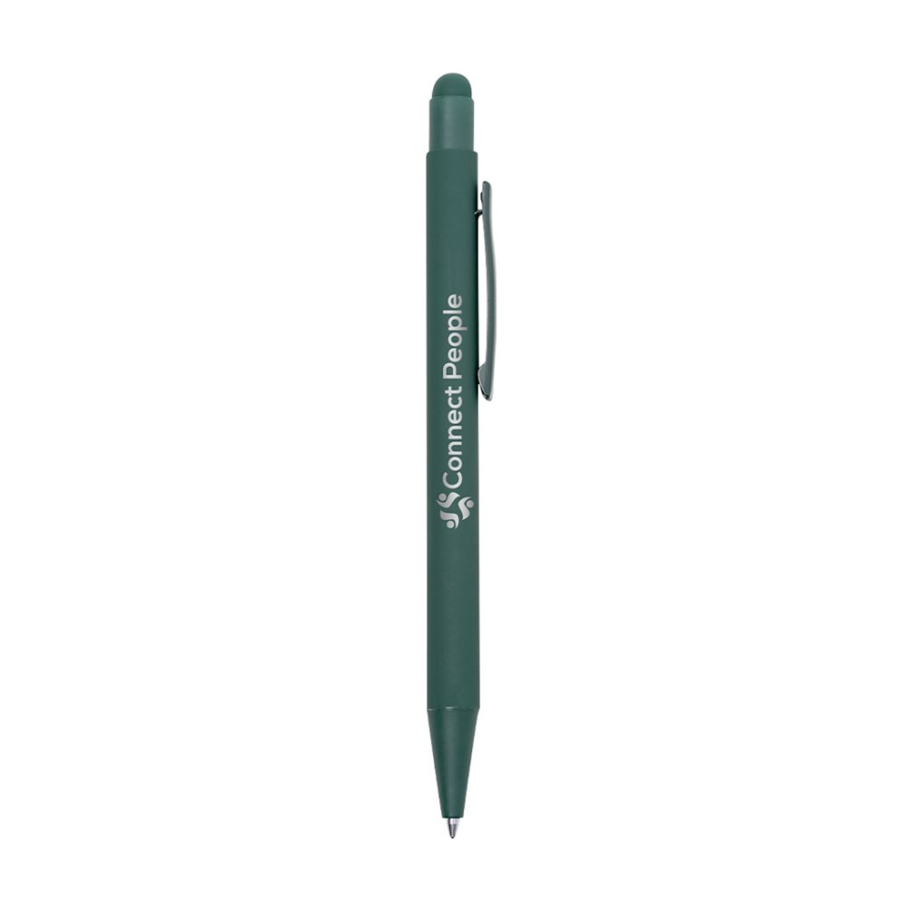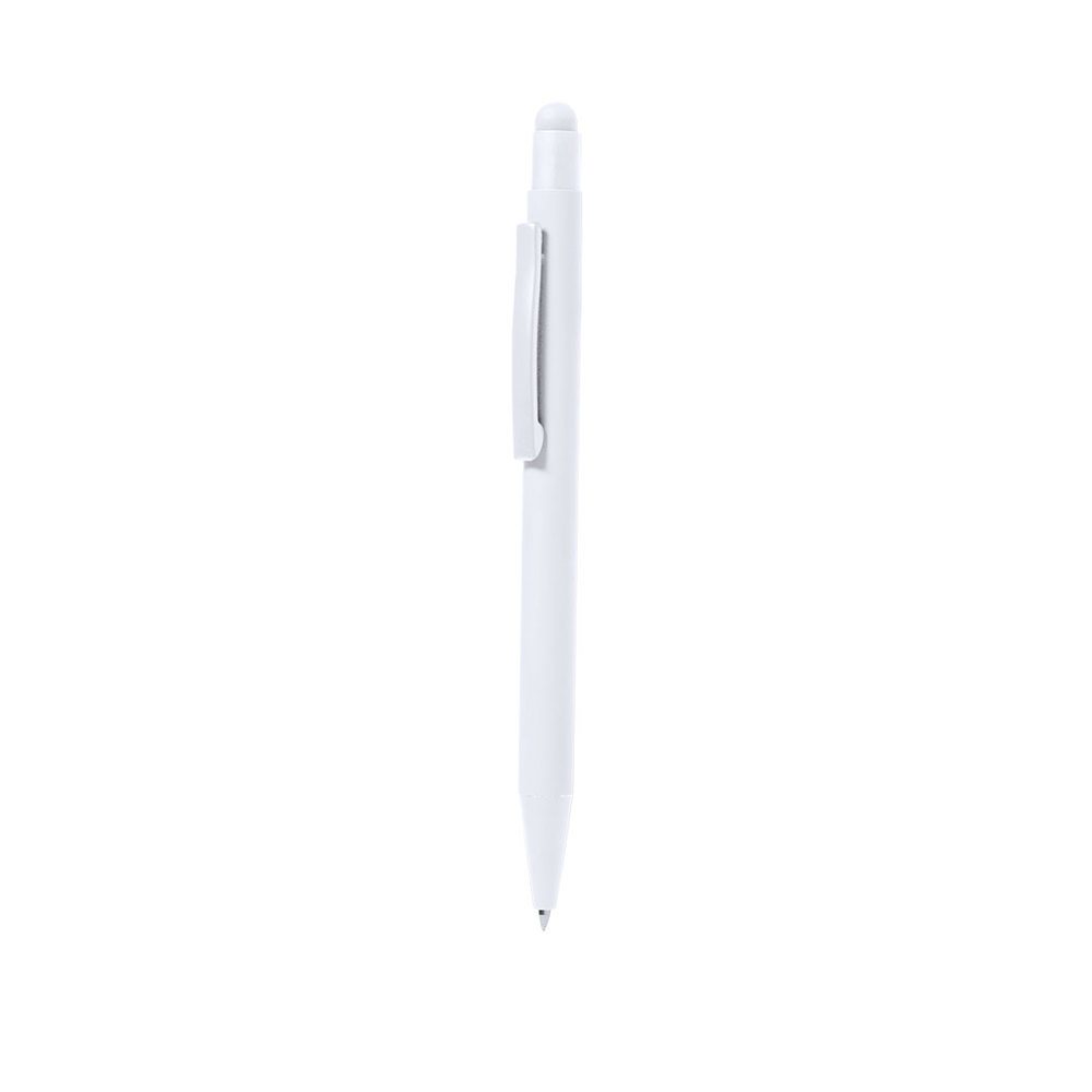 Stylus pen made of aluminum. With a push mechanism and matching metal clip with the body. Body finished in rubber, specially designed for laser marking. Jumbo cartridge with blue ink.