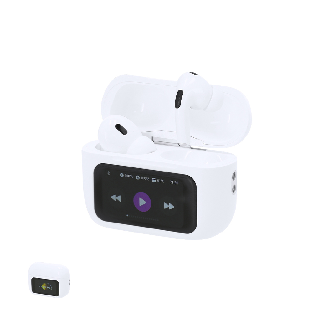 In-ear headphones with touchscreen equipped with ANC (Active Noise Cancellation) and ENC (Electronic Noise Cancellation) technology, which significantly reduce external noises to offer an immersive and high-quality sound experience.They include a color touchscreen with multiple functions:- Control of the headphones.- Hands-free function for calls.- Option to skip songs.- Alarm.- Support for multiple languages.- Customizable wallpaper.- Date display.- Remote control for photo shooting function.- Direct access to voice assistants.With Bluetooth 5.2 connection and rechargeable via USB Type C -cable included-.Manufactured according to RoHS standards and complies with the following safety requirements:Overheating protection system.Overload protection system.Locking system to prevent short circuits.Bluetooth connection. Battery 30 mAh/Charging Base 300 mAh.