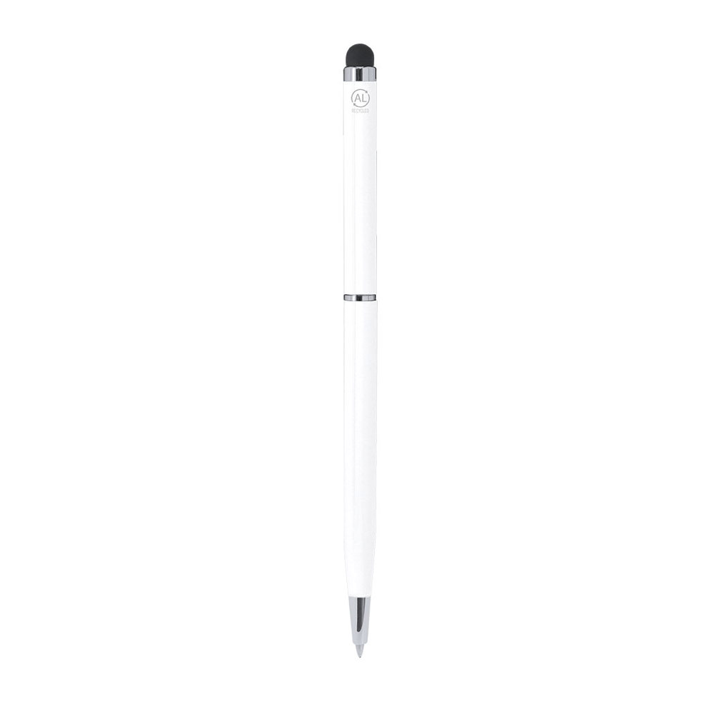 Elegant stylus pen made from Recycled Aluminum. With a rotating mechanism with a glossy finish and a black tip on the top, in blue ink. Clip and accessories in chrome finish. With an engraved Recycled Aluminum logo.Recycled Aluminum is a material with almost infinite recycling possibilities, without losing its original properties and consuming less energy in this process.GRS certification (Global Recycled Standard), which guarantees the recycled origin of the material used to manufacture the product.