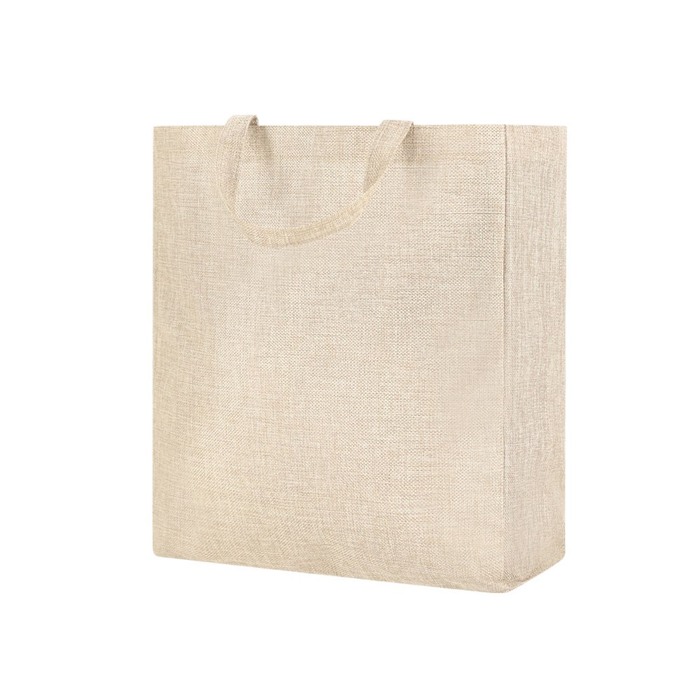 Bag made of soft and durable polyester, ideal for customization through sublimation printing. With gusset and reinforced handles. Resistant up to 6 kg.