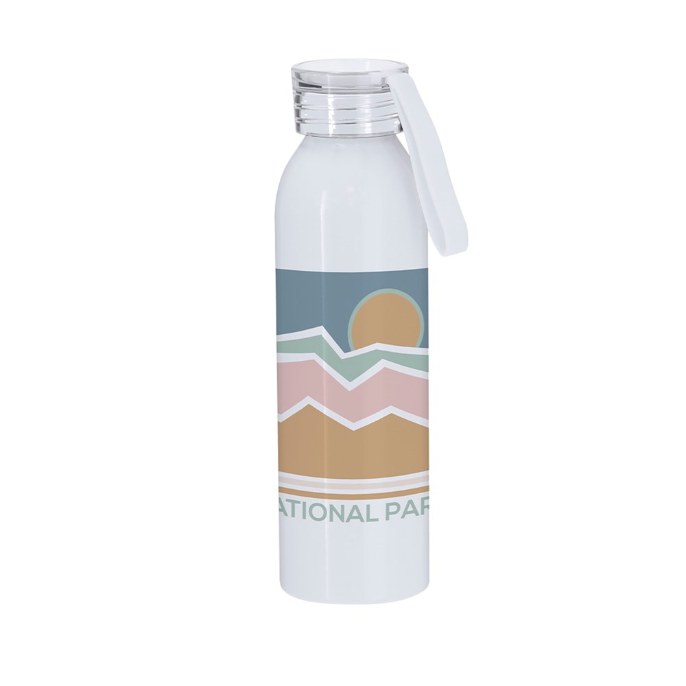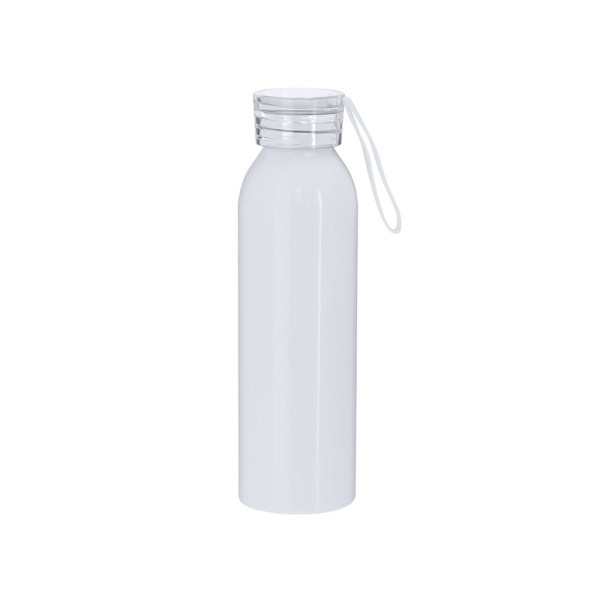 650 ml capacity bottle made of durable aluminum. In shiny white color, specially designed for sublimation. With a translucent screw cap and matching strap for easy transport. BPA-free.