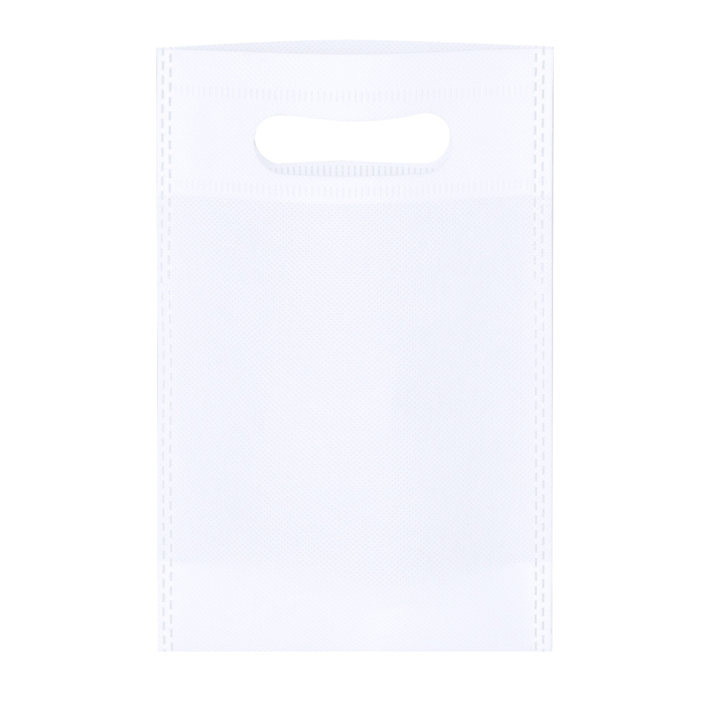 Non-woven bag of 80g/m2. With thermally sealed finished handles and a round gusset at the base.