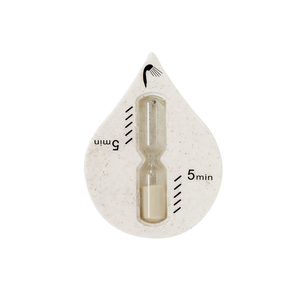 Hourglass made of wheat straw with original droplet shape. With 5 minutes duration, specially designed to measure shower time. With high-adhesion suction cup.Wheat straw promotes the use of natural raw materials, thereby reducing polluting emissions.