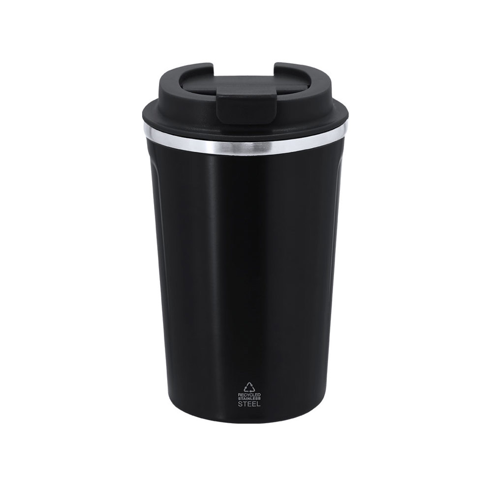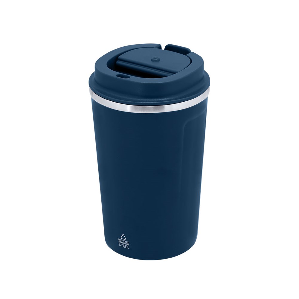 Thermal mug with double wall made from Recycled Stainless Steel and 400 ml capacity. Lid with easy open dispenser made of PP and BPA-free. Includes a Recycled Stainless Steel label.Steel is one of the most demanded materials and can be found almost everywhere, from daily use products to large constructions. With countless properties, among which durability and high recyclability stand out, making it a highly valued alternative in sustainability solutions. Properly treated, it allows obtaining new resources for infinite use.