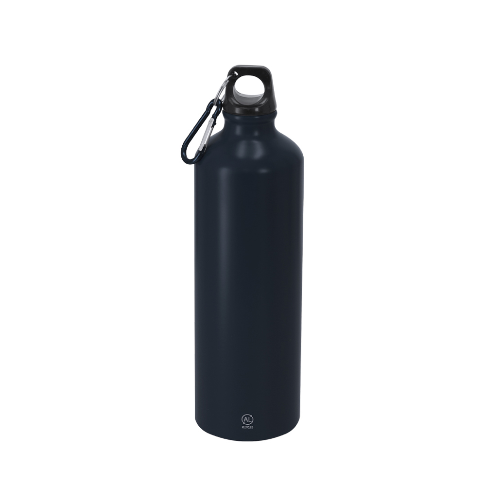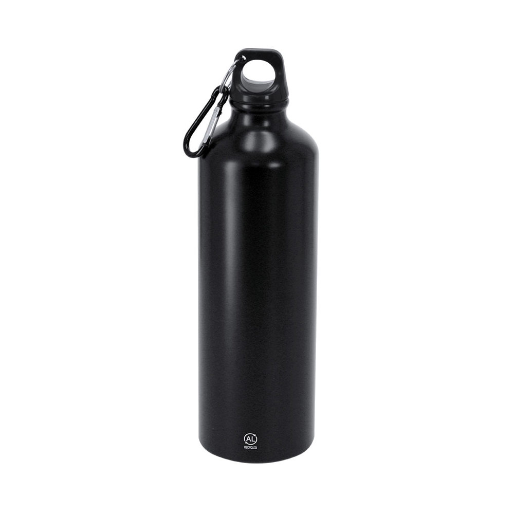 800 ml capacity bottle. Made of durable and sustainable recycled aluminum. With black screw cap and matching carabiner for easy transport. Frosted body finish. BPA-free. Includes Recycled Aluminum label.Recycled aluminum is a material with nearly infinite recycling possibilities, without losing its original properties and consuming less energy in this process.