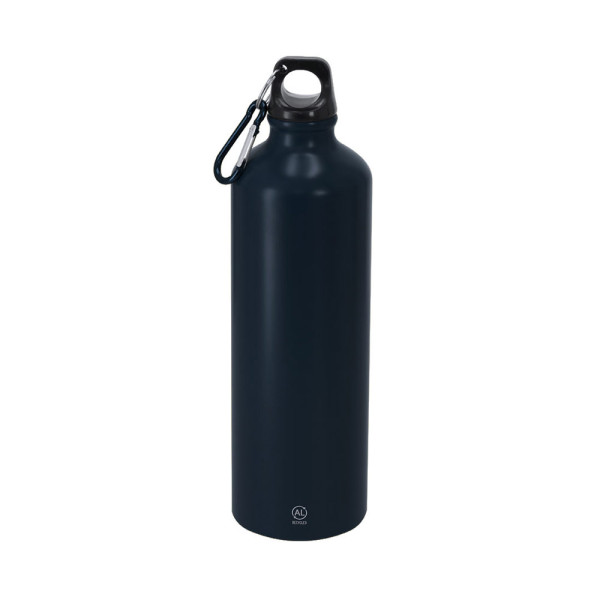 800 ml capacity bottle. Made of durable and sustainable recycled aluminum. With black screw cap and matching carabiner for easy transport. Frosted body finish. BPA-free. Includes Recycled Aluminum label.Recycled aluminum is a material with nearly infinite recycling possibilities, without losing its original properties and consuming less energy in this process.