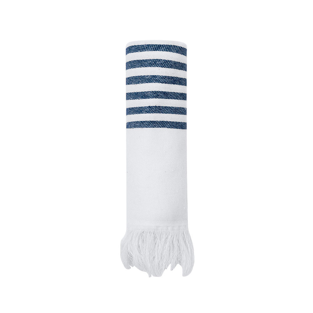 Soft pareo-towel of 300 g/m², made from a combination of recycled cotton and recycled polyester SEAQUAL. Its design features a white base combined with colored stripes and distinguished fringes at the ends. Includes SEAQUAL design label, certifying its sustainable origin and contribution to ocean cleaning. The SEAQUAL INITIATIVE works with collaborators and authorities to help clean our oceans. Marine waste from our beaches, ocean floors, and surfaces, rivers, and estuaries is collected through cleaning programs. It is then sorted into different types of materials, and the plastic portion is cleaned and transformed into RECYCLED MARINE PLASTIC, a fully traceable raw material that creates sustainable and inspiring products. By choosing products that contain RECYCLED MARINE PLASTIC, you are helping to clean our oceans. TOGETHER FOR A CLEAN OCEAN.