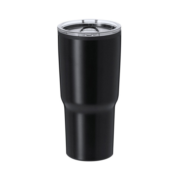 Thermal cup made of stainless steel with double wall and a capacity of 580 ml. With dispenser on transparent lid for easy opening, BPA-free. Ideal for keeping on your desk, table, or any surface to enjoy your favorite drink in peace.
