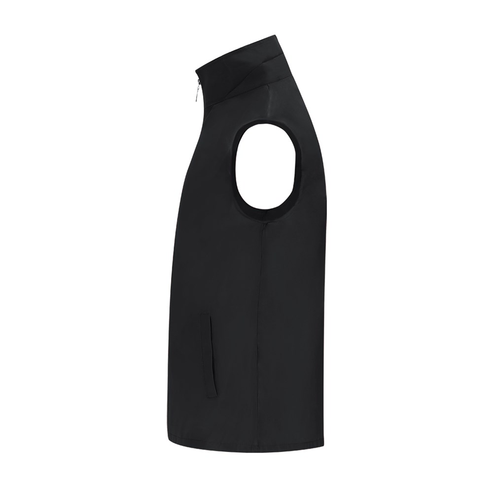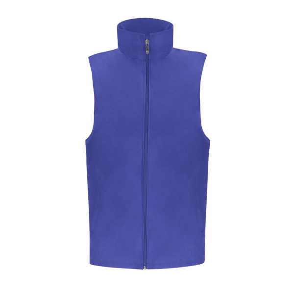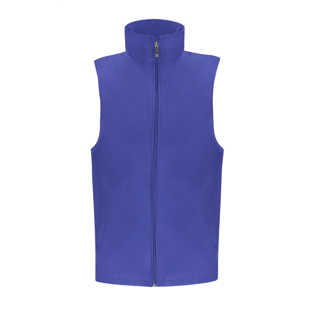 Unisex vest in lightweight, breathable fabric with white mesh lining. Matching front zip and silver puller, with an outside pocket on each side.