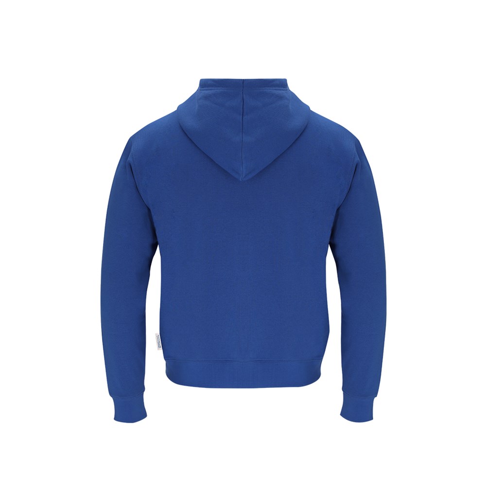 Unisex hooded sweatshirt with zip in Organic Cotton and Recycled Polyester, in soft 280 g/m2 quilted fleece. With double layer lined hood, adjustable round drawstrings - with matching stoppers - and metal eyelets. Elastane ribbed cuffs and waistband, and front kangaroo pocket. Hidden metal zip opening, with reinforced seam cover on collar. Including distinctive eco label.