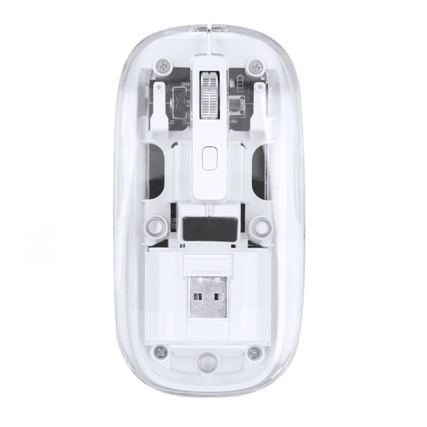 Wireless optical mouse in an original design, with a transparent showing the internal components of the device. Built-in 300 mAh battery and Type C charging port (cable included). Includes DPI button, with plug and play USB connection, and comes presented in an individual box with kraft design.