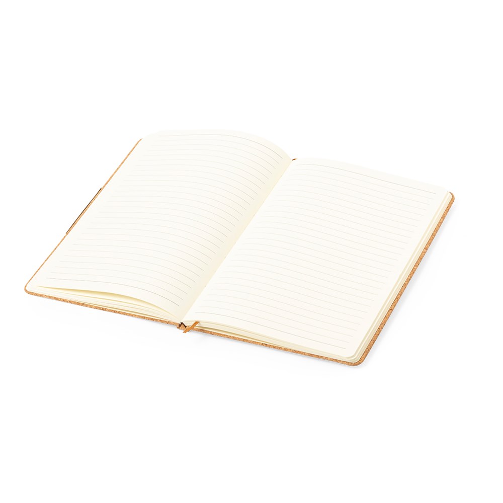 Notepad and ball pen set made of cork. Including:Hard covers notepad, with metal detail on cover, fabric bookmark and matching elastic band. 80 pages inside with single-stripe layout. Ball pen with barrel in soft cork. Elegant metal clip and matching accessories, push-button mechanism and blue ink. 16GB USB memory key ring in the shape of a bottle cork. Set presented in an elegant kraft-coloured design case, with independent compartments for each item.Made with plant-based elements to promote the use of natural raw materials and reduce polluting emissions.